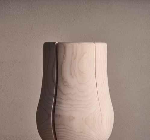 It's quiet, one-of-a-kind presence highlights the inherent beauty of the wood itself. The smooth, flowing form is carved entirely by hand using chisels and planes.Rather than relying on detailed drawings, the craftsman determines the final shape by carefully reading the condition of the wood—a process possible only through mastery of traditional techniques.